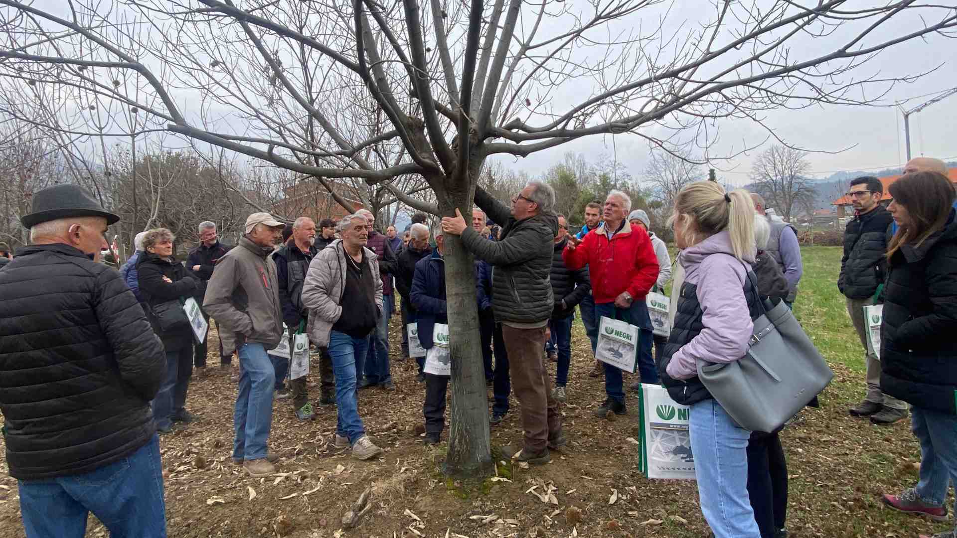 Con queste parole Adriano Rosso, responsabile Confagricoltura zona di Cuneo commenta l’incontro di giovedì 5 marzo dal titolo “Prove in campo castagno – Dimostrazione di potatura tree climbing e raccolta meccanica”, organizzato dall’associazione datoriale con il patrocinio della Provincia di Cuneo e il sostegno di Cuneo Castagna IGP e della CCIAA di Cuneo. Oltre duecento partecipanti si sono ritrovati presso l’azienda agricola “Le Delizie della Valle Grana” di Caraglio per assistere ad un aggiornamento sulle pratiche colturali e sulle innovazioni meccaniche applicate alla castanicoltura e seguire, successivamente, le dimostrazioni pratiche di raccolta meccanica e potatura tree climbing.